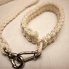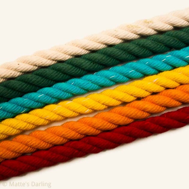 Its made in 100% cotton - but with a thinner cordage, there for it is less sturdy and more flexible, compared with the larger leashes.
