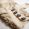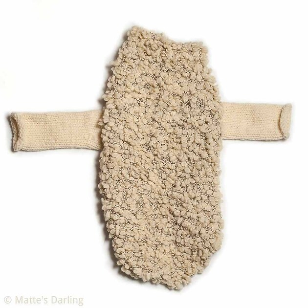 An off white one-of -a-kind sweater. Knitted in a special wool blend, that gives the impression of sheepskin. This yarn is only used on the top side.