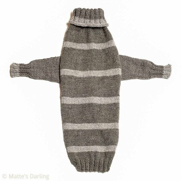 This sweater is klitted in two shades of grey, and a rib knitted turtel neck with a wound up edge.