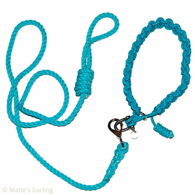 This collar is made in 100% cotton. Hand dyed in a vibrant turquoise color, with a hang noose detail.