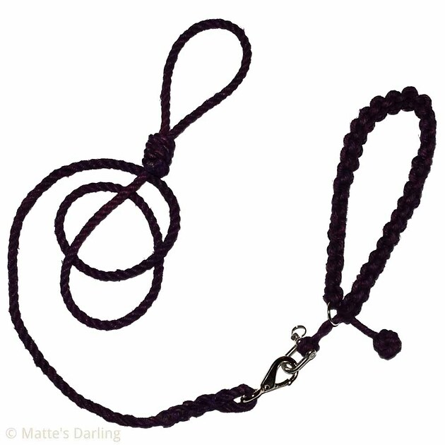 This 100% plant fibre collar, is hand dyed in a gorgeous, deep violet/lilac colour, with a monkey fist detail.